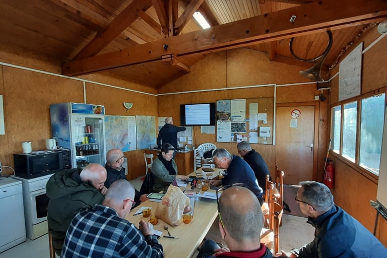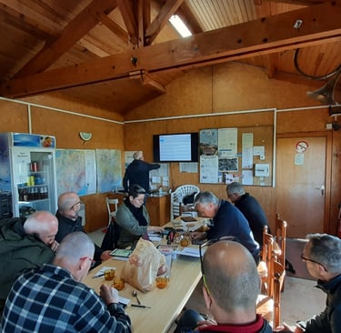 Petite séance de révision et de remise à niveau, animée par Gilles, sur la sécurité et la préparation des vols.